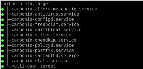 systemctl --type=service | grep carbonioThe systemctl also allows grouping a set of services and commands into a target. A good example is the carbonio-mta.target. There is no standalone service named mta; instead, it is a collection of multiple services that are started or stopped together as a unit through this target.